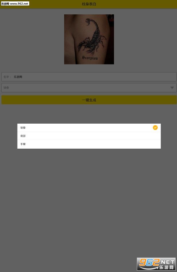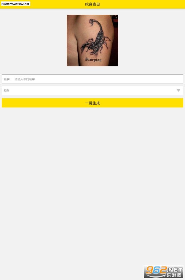 2026情人节纹身表白图片生成器是一款为小伙伴们打造的表白神器,可以利用软件简单的制作一个纹身表白图片,软件使用简单,选择不同的纹身类型,输入对方的名字即可点击生成。