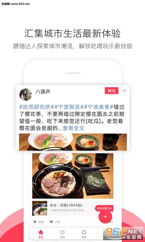 十万好玩的、喜欢小众与独特体验年轻人与我们一起打造集发现同城品质好物、推荐同城优质吃喝玩乐好去处的生活社区。