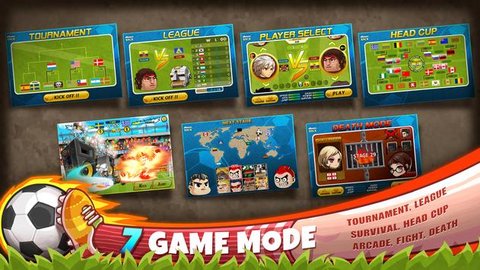 2、7种游戏模式(街机模式、联赛模式、生存模式) ( Arcade, Tournament, Survival, League, Head Cup, Death Mode, Fight Mode )