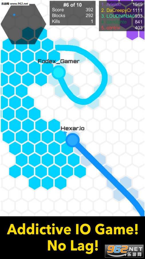 游戏世界是一个非常有规则的六边形蜂窝世界,玩法目标就是控制你的角色移动并圈住更多的六边形土地,还是比较考验玩家的走位和智谋的,很有挑战性!