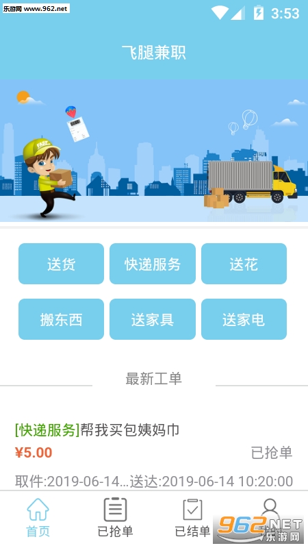 有闲暇时间的用户可以通过本APP获取本市需要兼职跑腿服务的工单,抢单后即可与下单人联系进行配送服务,