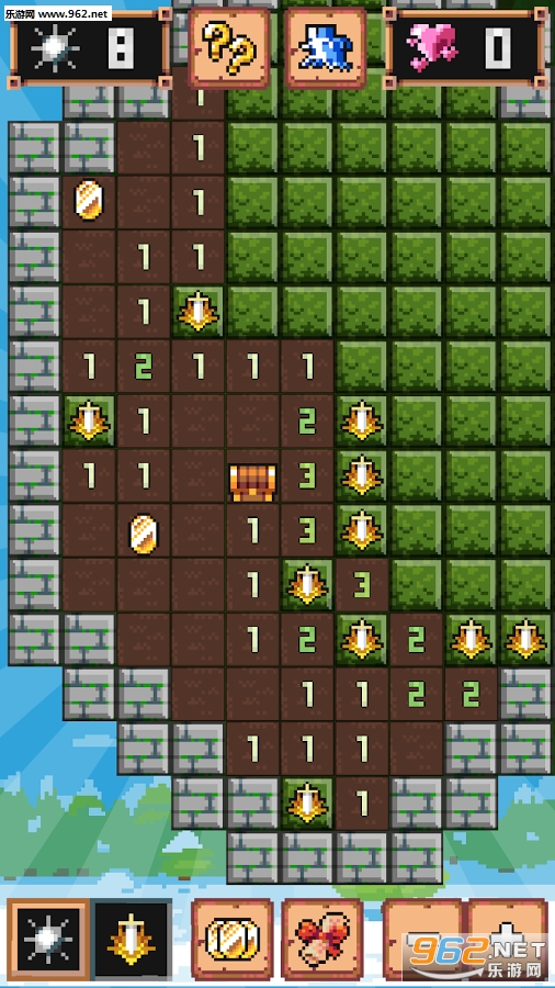 2、道具模式:每局扫雷翻开地砖有几率发现金币跟物品,物品可以用来辅助过关!毕竟很多空格只能靠猜。