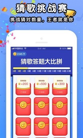 3、丰富的游戏关卡,无限的答题活动,不同类型的歌曲,还能发现动听好歌