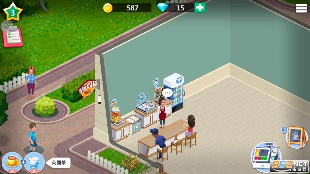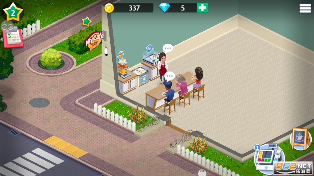 帮助女主角实现梦想,你可以装饰你的咖啡机、购买必要的设备和家具、雇佣员工、管理你的员工。