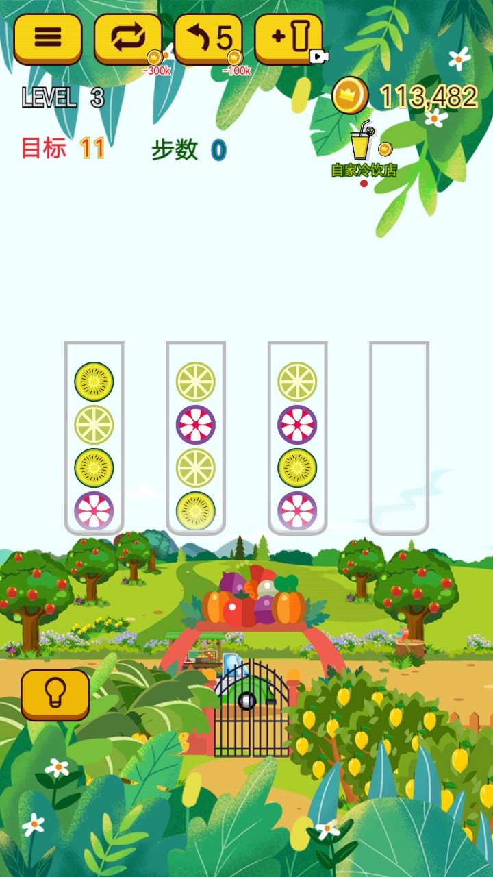 玩家需要将玻璃杯中的水果按照颜色进行分类排序,让不同种类的水果聚集到同一个玻璃杯中。