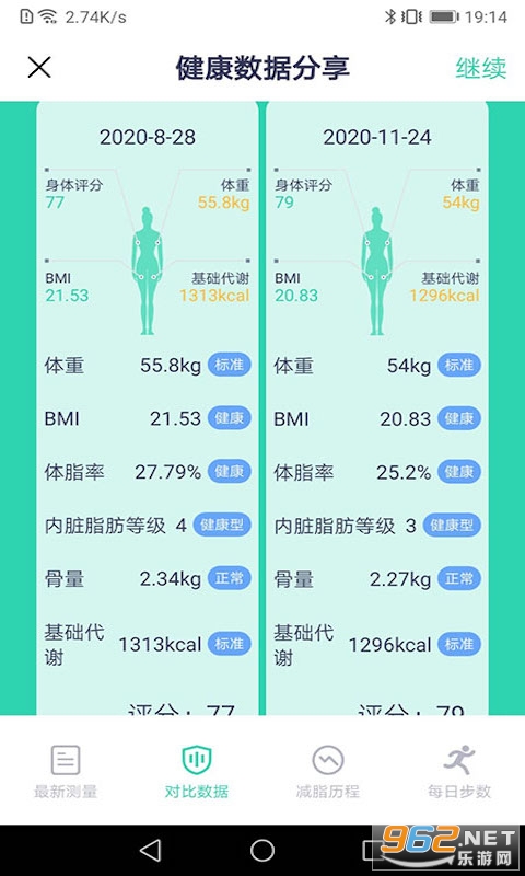 允许您对于不同日期的指标项目进行对比,及时了解您的身体变化。