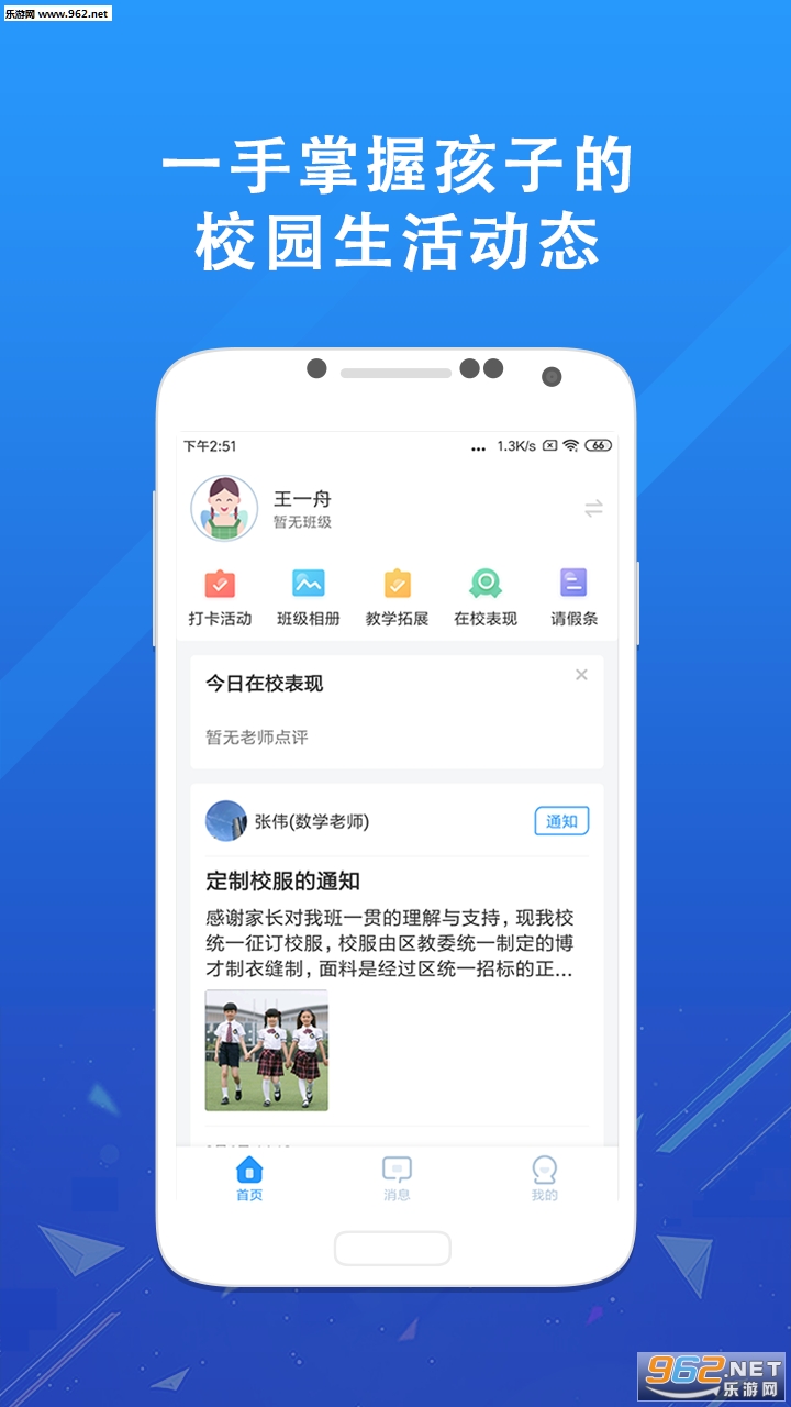 -成绩单和课堂评价:查看老师发布的成绩单和孩子在校的生活学习状态;