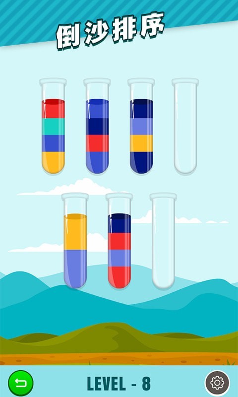 倒沙我最强排序谜题看似是一款简单的游戏,但是能够很好的展现了玩家的实力。玩家要灵活的把这些沙子去进行很好的归类,把相同的颜色沙子倒到一个试管里面。