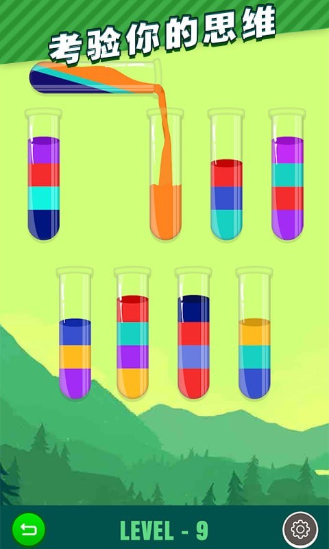 简单的操作玩法模式,你可以控制水瓶来倒入不同的液体,让液体变换不同的颜色。