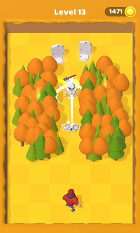 画面简单轻松,砍树操作只需要轻松的点击,你只需要灵活的进行闪避。