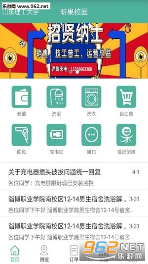 能够提供校园中的众多服务,支持充值功能,还能够实现洗衣服务,为你带来自主购物体验,拥有最近使用内容查询功能,能够进行各类充电桩使用服务!