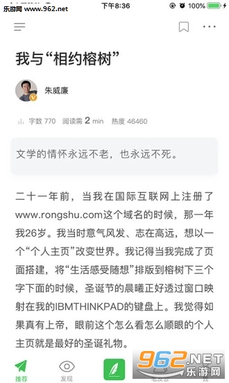 相约榕树APP隶属上海榕书信息科技有限公司,是由创办于1997年的全球原创作品网站"榕树下"创始人朱威廉及其初创团队共同打造的一个高品质全球中文原创作品分享社区。