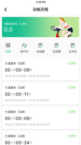 在线查询训练记录,统计健身时长
