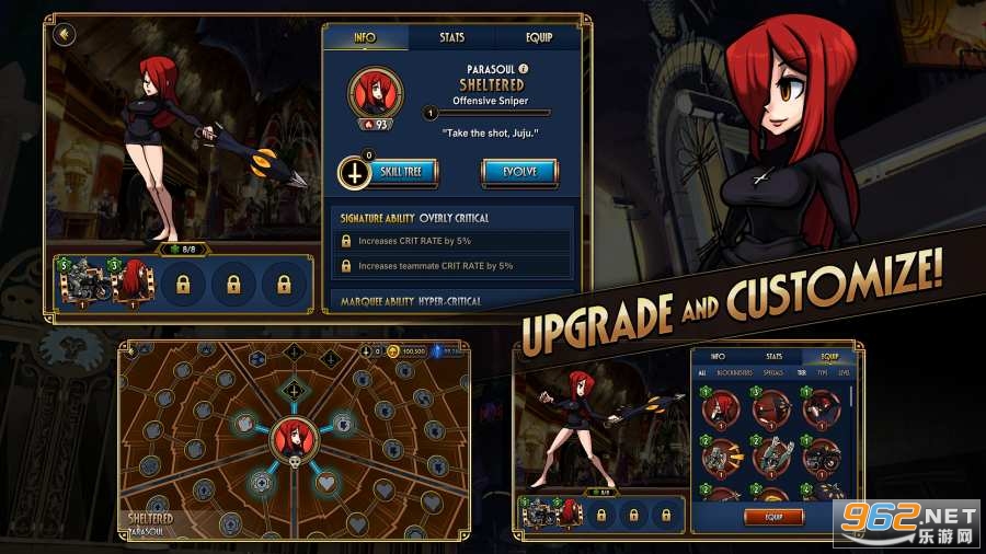一款非常优秀的横版格斗游戏,游戏中的各种动作都是有手绘而成,帧数非常的高,动作流畅自然。玩家将选择不同的骷髅傻女进行战斗,同时完成不同模式的挑战,获得各种各样的奖励,游戏的玩法轻松有趣,推荐给喜欢横版格斗游戏的玩家。