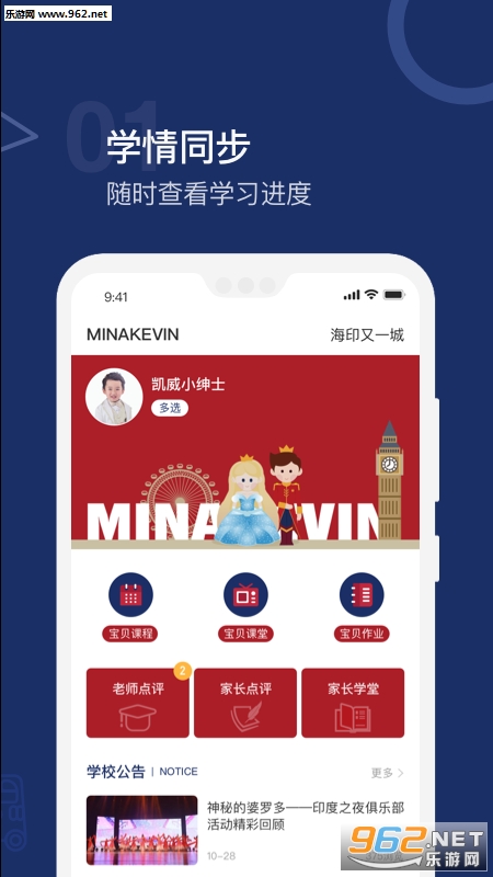 1.宝贝课程:可快速查看上课时间地点,方便联系任课老师、学习管家