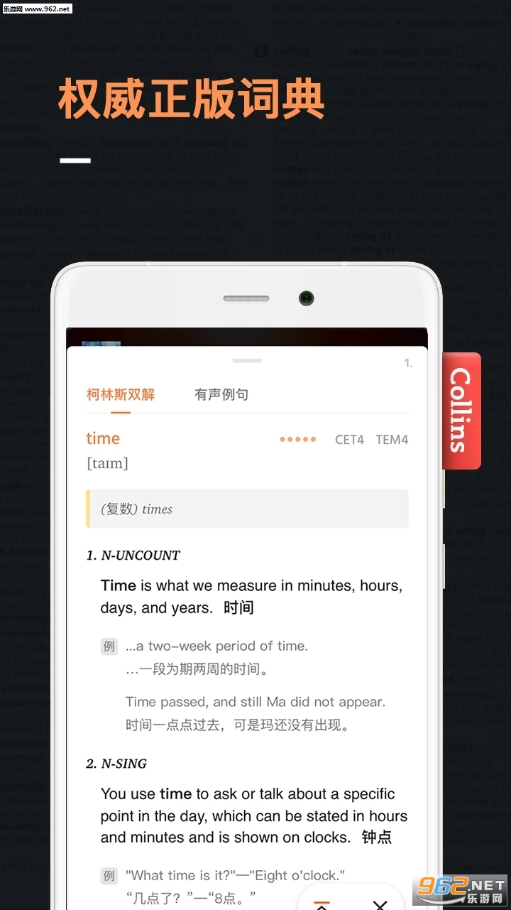 专业的柯林斯英汉双解词典,贯穿整个学习流程,时刻为你答疑解惑