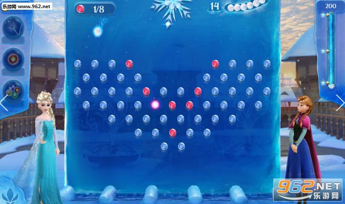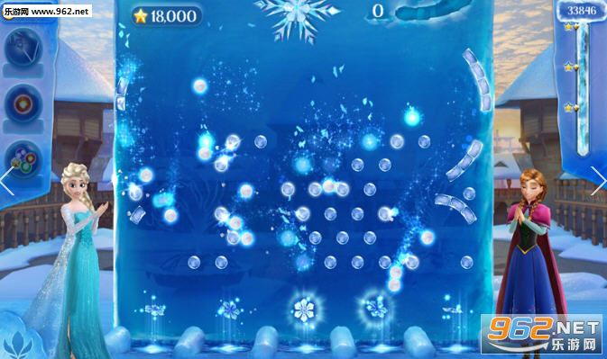 在碰到难关的时候也无需担心,游戏内提供了各种增益道具(闯关时有几率获得,也可氪金购买),能够给玩家带来极大帮助。那些道具有的能够预测下一枚射出雪球的前进路径,其他的还有火焰球、大雪球等等,再加上艾莎的雪花炮打出的魔法雪球,都是能一发消除大量冰砖的好帮手。至于游戏画面、特效也无需担心,完全延续了迪士尼家族游戏精致好看的优良传统。