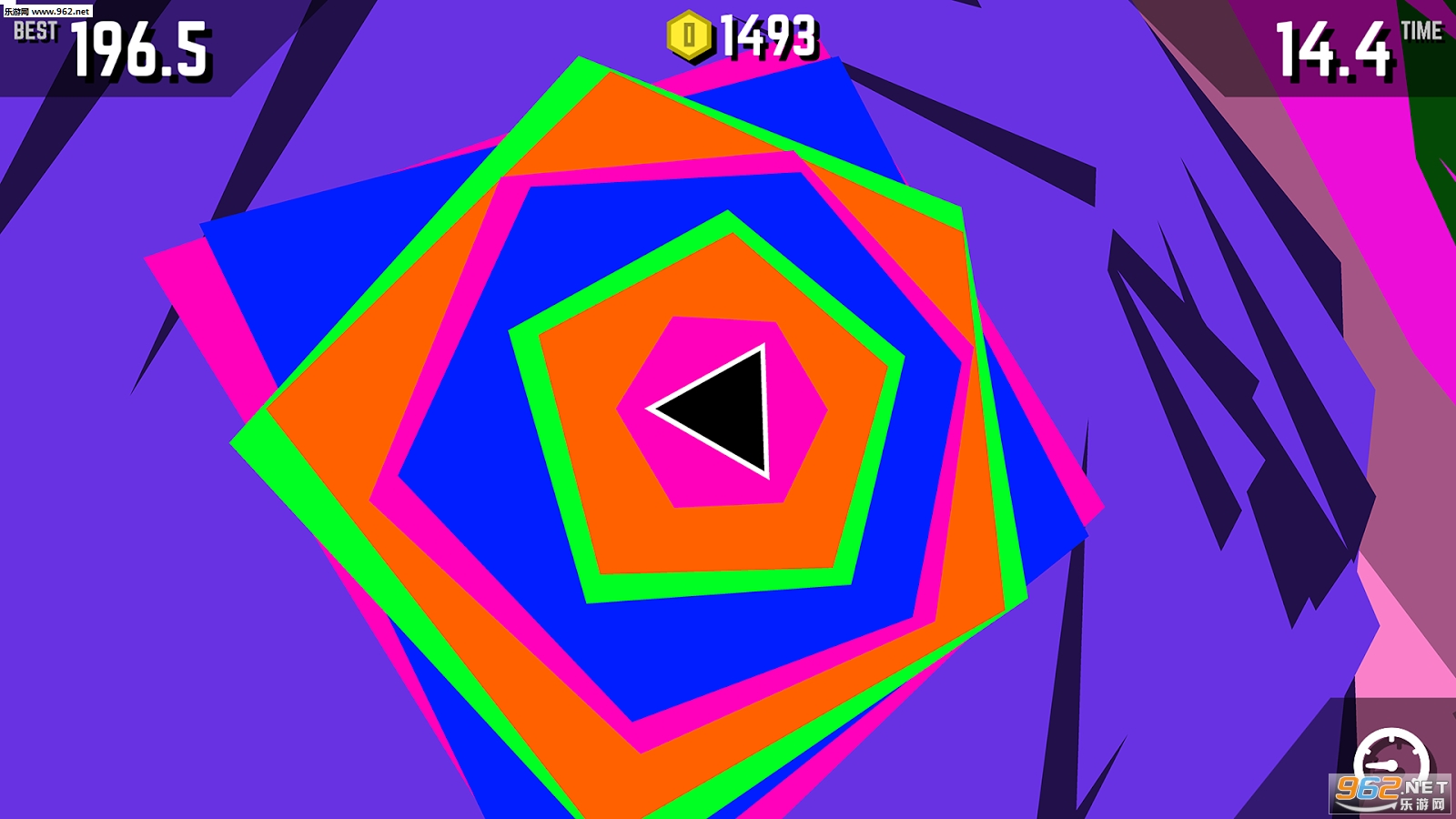 闪耀多边形这款游戏是个快速反应类的游戏,游戏里图形的变化似乎是跟着背景音乐节奏来变化的,这个设定挺有意思。另外游戏里的图案颜色变化的很快而且激烈,相当的闪眼睛。
