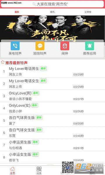 时下最火的电视剧、歌曲铃声应有尽有,一键设置更换新铃声!