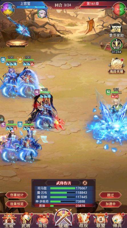 战法将星多元系统:战法与将星系统丰富多元,为玩家提供了多样的策略选择,相同武将也能展现出不同的套路。