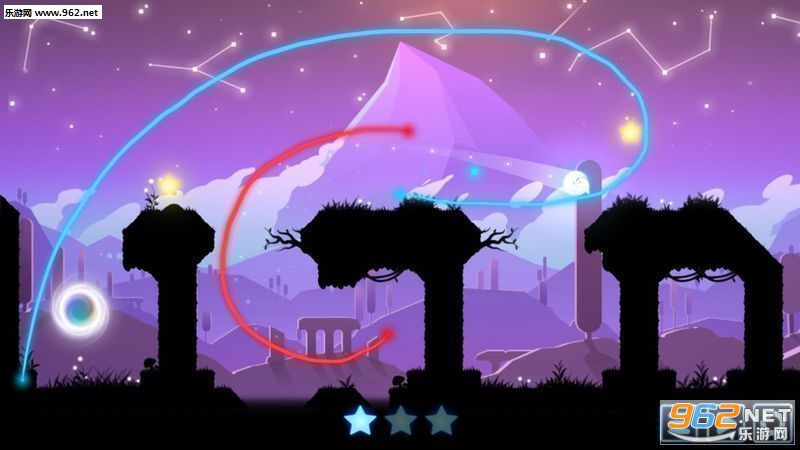 玩法是利用星光画出一条线,以此引导小狐狸滚动,到达光圈所在地即可。