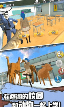 动物校园模拟器是一款非常有趣好玩的校园模拟器。不知道各种小伙伴们在学生时期有没有幻想将学校变成动物呢,与各种不同的动物们一起上学生活想想就非常有趣内,在这里你将能够实现并满足你所有的幻想。在这款游戏中你将要在一座校园里与各种不容的动物,还有各中性格特点的女高中生一起在校园内共度学院生活。在游戏中玩家可以操控你的角色们自由的移动去校园内的各种地方,各种动物任你撸,还有病娇学妹追求你。而且在游戏你还能够开各种豪车,场景载具没有任何限制能够带你上天入地无所不能。你还能在游戏中与各种动物以及女高中生们产生各种互动,各种交互方式将会让你脑洞大开。最奇特的就是合体系统,你可以与游戏中的动物你们进行合体,动物种类非常的多目前高达30多种,而且本作还在持续不断的更新,游戏地图还在不断的扩大。