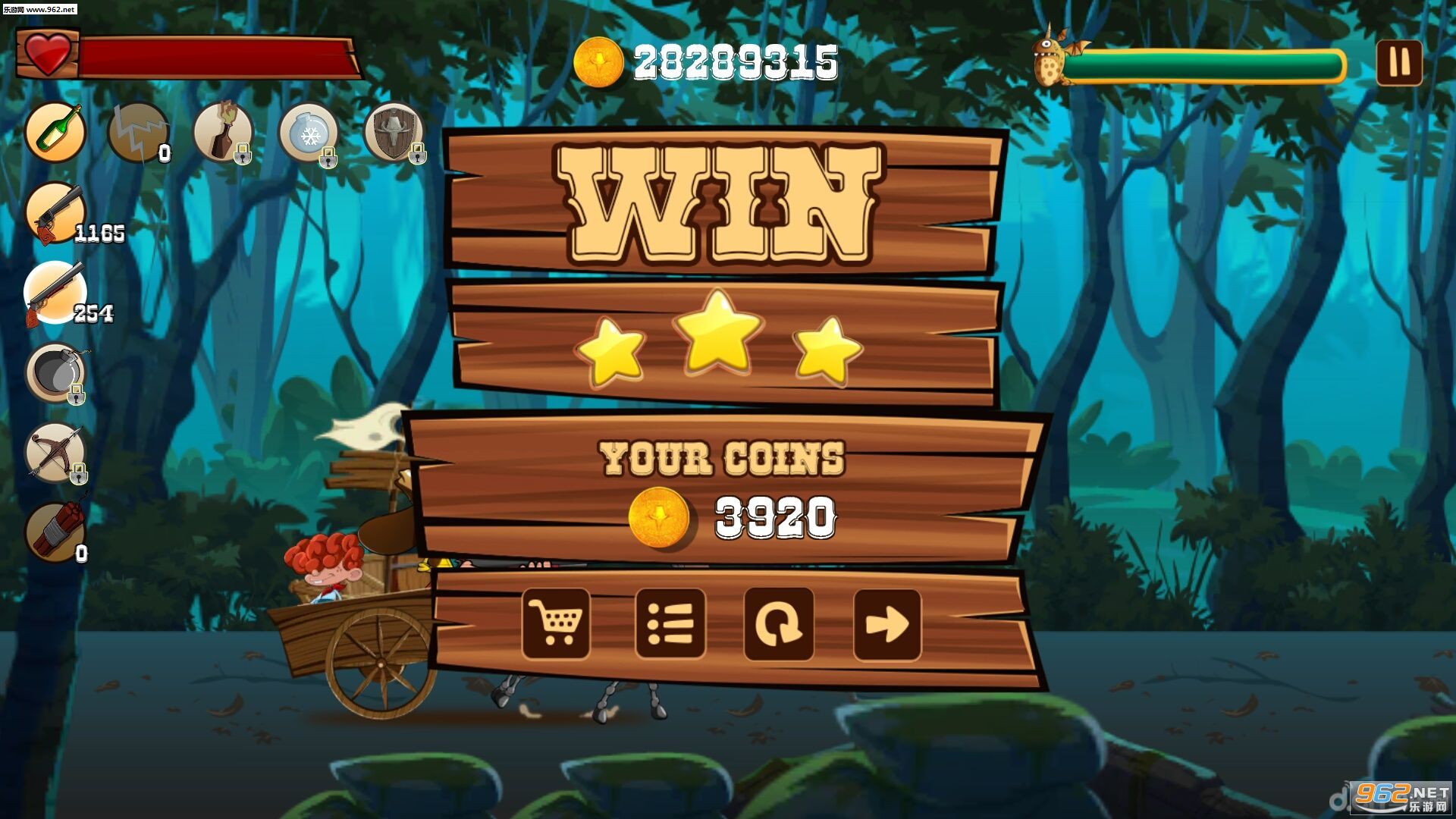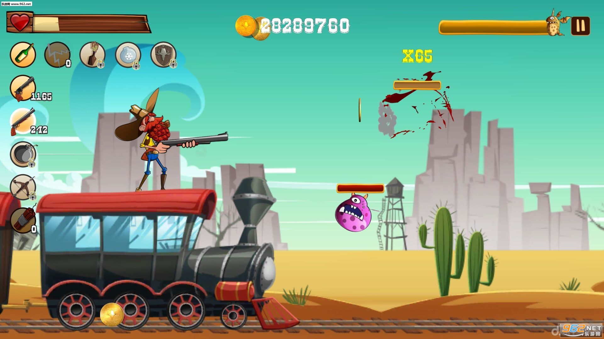 你将陪伴驾着马车驰骋在美洲荒野的爷孙两人,来不断闯关冒险收集财富。游戏中怪物多会以成群结队的形式出现在马车周边,我们要控制这爷孙两人使用特殊武器向怪物射击。比如扔酒瓶、弹弓……总而言之,即使对手不是人类,Ginger Ranger也依旧面不改色心不跳。
