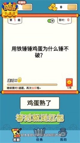 成语大满贯正版是一款寓教于乐的成语姐妹闯关手游,大量的惊喜福利等你来获取,只要通关就有红包等你来拿,乐趣十足,还能进一步增进你对成语的了解,不断闯关,难度一步步升高,当然奖励也会更多。