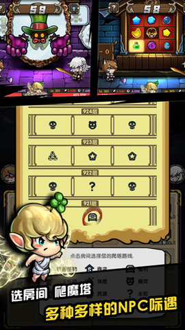 随机性的房间检测玩家的运气,在爬塔过程中在进入下层的时候会出现多个随机房间,房间里面的东西都是未知的。