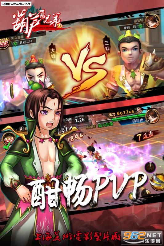 少年葫芦娃是由同名国产动漫官方授权制作的3D动作类手游,采用东方玄幻神话式画风,满帧运行,流畅性极佳。战斗可同时出战三个葫芦娃,通过不同角色和装备搭配,在战斗中将动作性和策略性巧妙融合;实时在线PVP系统更是把玩家之间的合作、对抗表现得淋漓尽致。