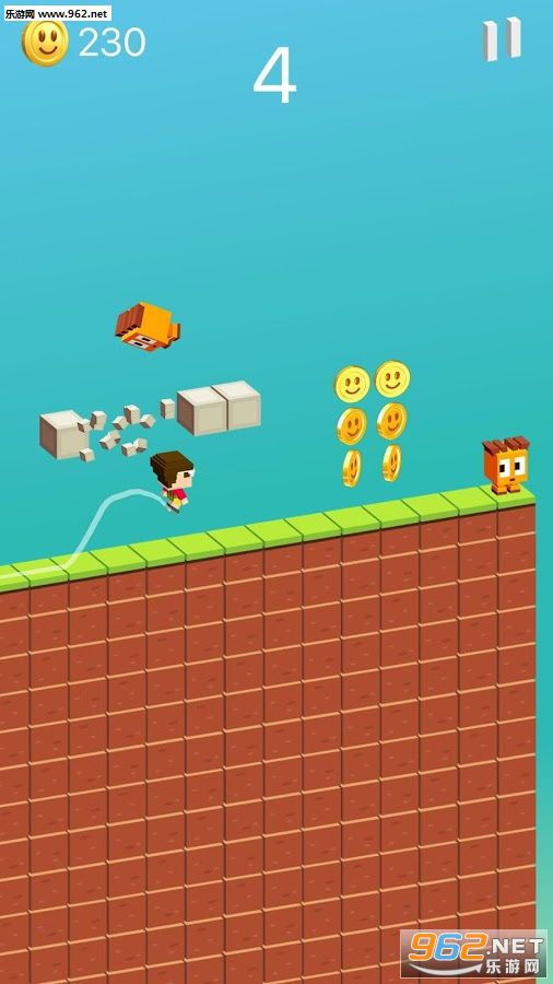 《跳跳 Jumpy》是一款小清新风格的闯关小游戏,就是通过跳跃来完成一切操作,前进、向上、躲避等等,点击屏幕来控制角色的跳跃路线与上升空间,有些特殊的方块还可以进行爆破摧毁,获得前进的路线。