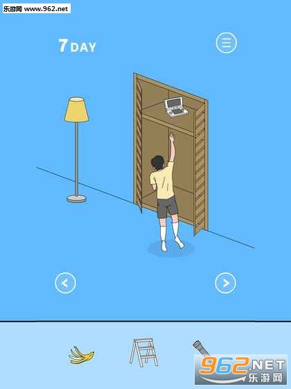 橱子里拿起梯子,架在右边衣架下面爬上去拿3DS。