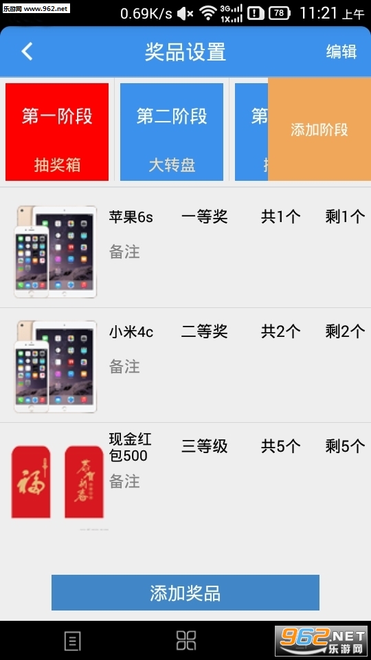 背景音乐:支持滚动音乐、中奖音乐、颁奖音乐。