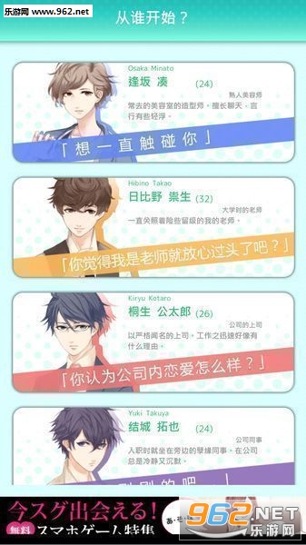 g.g的新作,这回是纯爱类型的乙女向游戏!玩法还是和七怪谈那些是一样的,根据好感度来进入不同的结局,有特别的能直接进bad ending选项,可以通过点点点来加速短信回复时间,打出全结局还会有后日谈故事