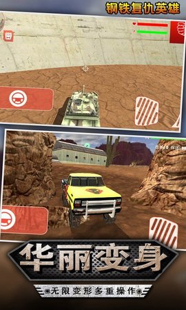钢铁复仇英雄安卓版是一款超好玩的机甲战斗游戏,这款游戏采用了3D的风格完成你的游戏玩家扮演一个机甲英雄,游戏的画面非常的逼真,依靠自己强大的机甲,在这里玩家控制你的机器人完成你的游戏对战。