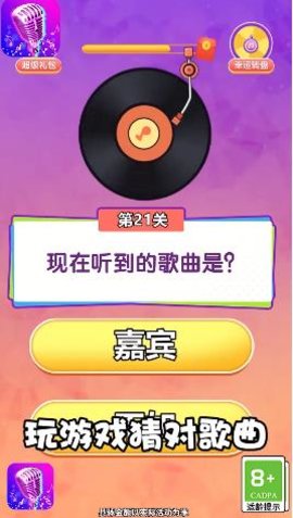 3、休闲娱乐的风格,益智的猜题游戏,答对赢红包,一起快乐听歌曲