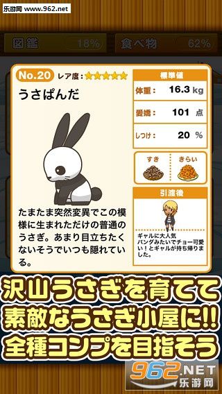 《兔子小屋》玩家要根据不同类型兔子的习性来决定喂养什么样的食物,随着游戏的发展还可以解锁更加稀有的兔子品种,所有的兔子从宝宝开始培育!有各种各样的婴儿在,培育哪个兔宝宝也烦恼,正因为都很重要所以花心思培育好了,才能好好地出货吧。