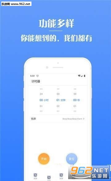 操作简单便捷,内含了世界时间、秒表、便捷倒计时、闹钟主题等功能。