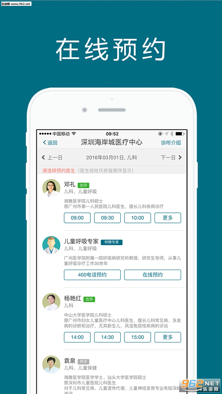 方便快捷的自助预约:随时随地拿起手机,即可实时浏览到卓正医疗线下网络诊所两周内的预约情况。简单的三步操作,即可为您或您的家人实时提交预约。专业的卓正预约助理将迅速处理您的预约申请并向您确认预约进展。