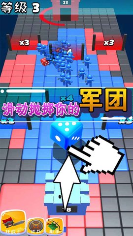 1、游戏中的关卡非常的精彩,滑动屏幕就可以投掷骰子,可以生成对应数量的士兵