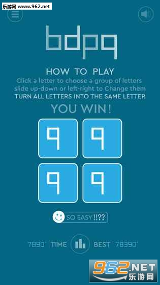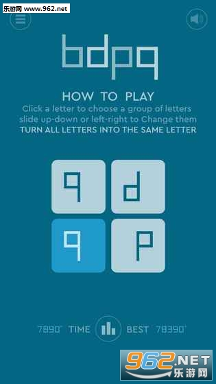 据悉,《bdpq》是北京睡神飞游戏工作室原创的一款智力游戏,灵感来自于魔方以及bdpq这四个字母。因为bdpq这四个字母可以通过上下左右镜像翻转变成它们中的任何一个字母,再借助魔方的原理,将原本乱码一样的四个字母全都还原成一个字母。