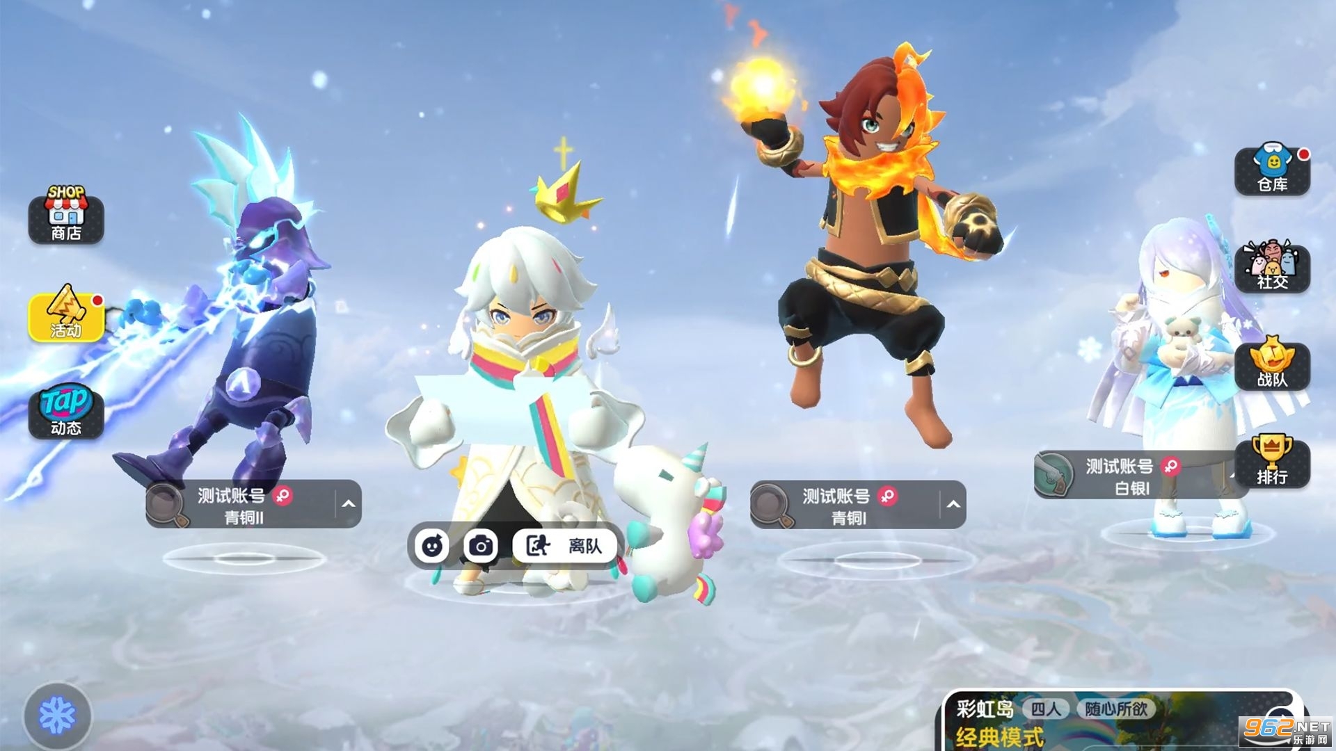 全新赛季带来新身份卡【彩虹王子】、【雪女】,轰炸区调整为雷电区,并增加大厅背景天气变化效果!