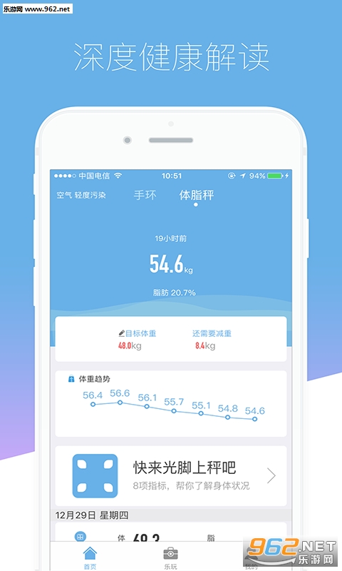支持云镶体脂秤,云镶运动APP配合云镶体脂秤使用,可即刻同步身体水分、骨量、肌肉含量等9项重要体征指标,评测分析身体状态,并基于评测报告量身打造专属动态健身目标,帮助您明确方向,每天更接近理想的自己。单独使用,可追踪和分析您的体重、基础代谢等塑形关键指标,并根据身体状态制定合理的每日步行目标,自动记录步行情况,及时提供反馈报告。用云镶运动随时随地掌握自己的健康指数,不管是瘦身、瘦腰、瘦腿都更科学更健康。