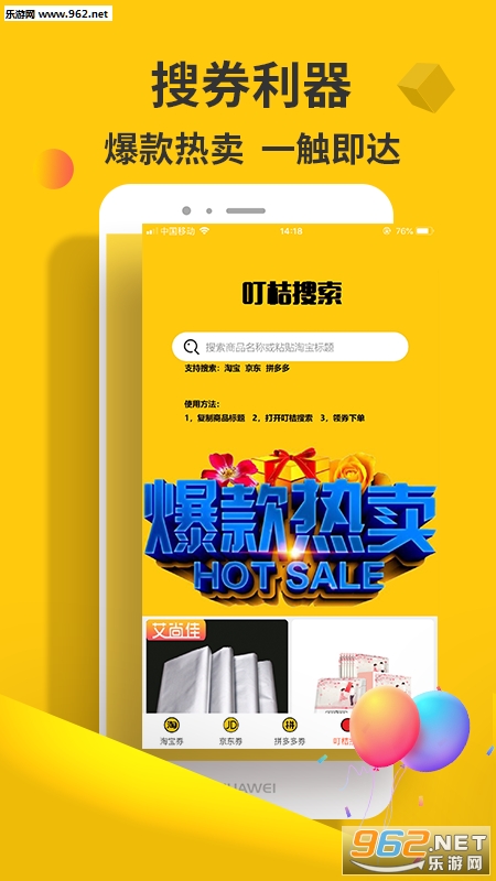 叮桔,一款专业的导购APP,为你提供智能购物新体验,省钱达人的首选APP,告诉你什么值得买!每天更新10万+商品优惠券,购物前先领券,省钱之道从现在开始,超多淘宝天猫优惠券,各种商口任你选购,9.9元掏好物,一元秒杀欢乐购,使用简单,只要简单三步,即可轻松领券购物。