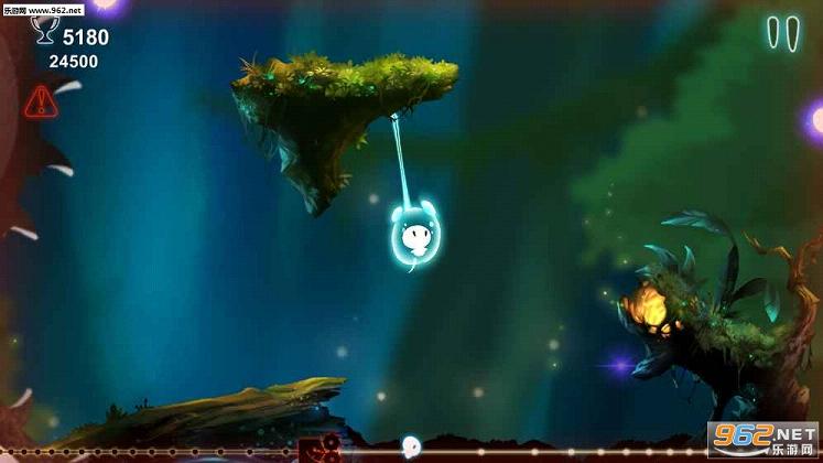 悠扬的音乐中,在光彩照人的背景下飞舞,摇荡在指尖的精灵在眼前飞跃着,欣赏音乐,感受那份悠闲的氛围,以荡秋千的方式一边收集材料一边躲避可能会戳破精灵泡泡的障碍物和陷阱,送我们可爱的精灵到它想要去的地方吧,这就是这款游戏的魅力所在。