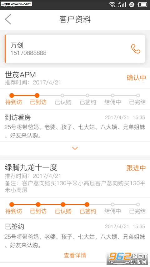客户跟进:查看推荐反馈,及时了解客户购房进度