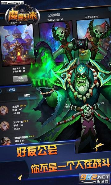 《魔兽归来OL》是一款大型全3D即时对战手游,背景源于魔兽,有各种我们熟悉的魔兽角色登场,多兵种之间需要默契配合才能更好的战斗。重重考验部落远征,无尽关卡,极限闯关。这里有最经典的英雄角色,最炫酷的技能效果,最畅快的手操走位,让你傲视群雄;这里有最华丽的特效,最精美的场景,最具策略的对战,让你欲罢不能。勇士们,一起加入拯救都城的战役中吧。游戏具有一定的策略性,有着经典的英雄,华丽的技能效果,快来一起闯关远征吧!