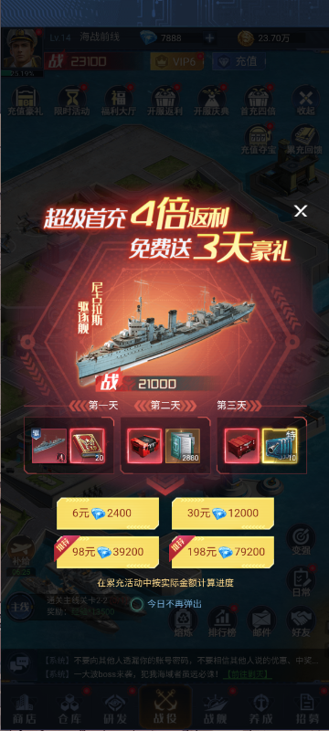 组队闯关与竞技玩法:游戏提供组队闯关和PVP对战等玩法,让玩家在与其他玩家的合作与竞技中体验海战的激情与刺激。