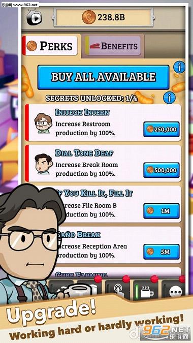 《办公空间:空闲的利润OfficeSpace:IdleProfits》是由Kongregate提供的一款点击类模拟游戏。游戏画面绚丽多彩场景丰富,非常有趣好玩的休闲娱乐游戏。