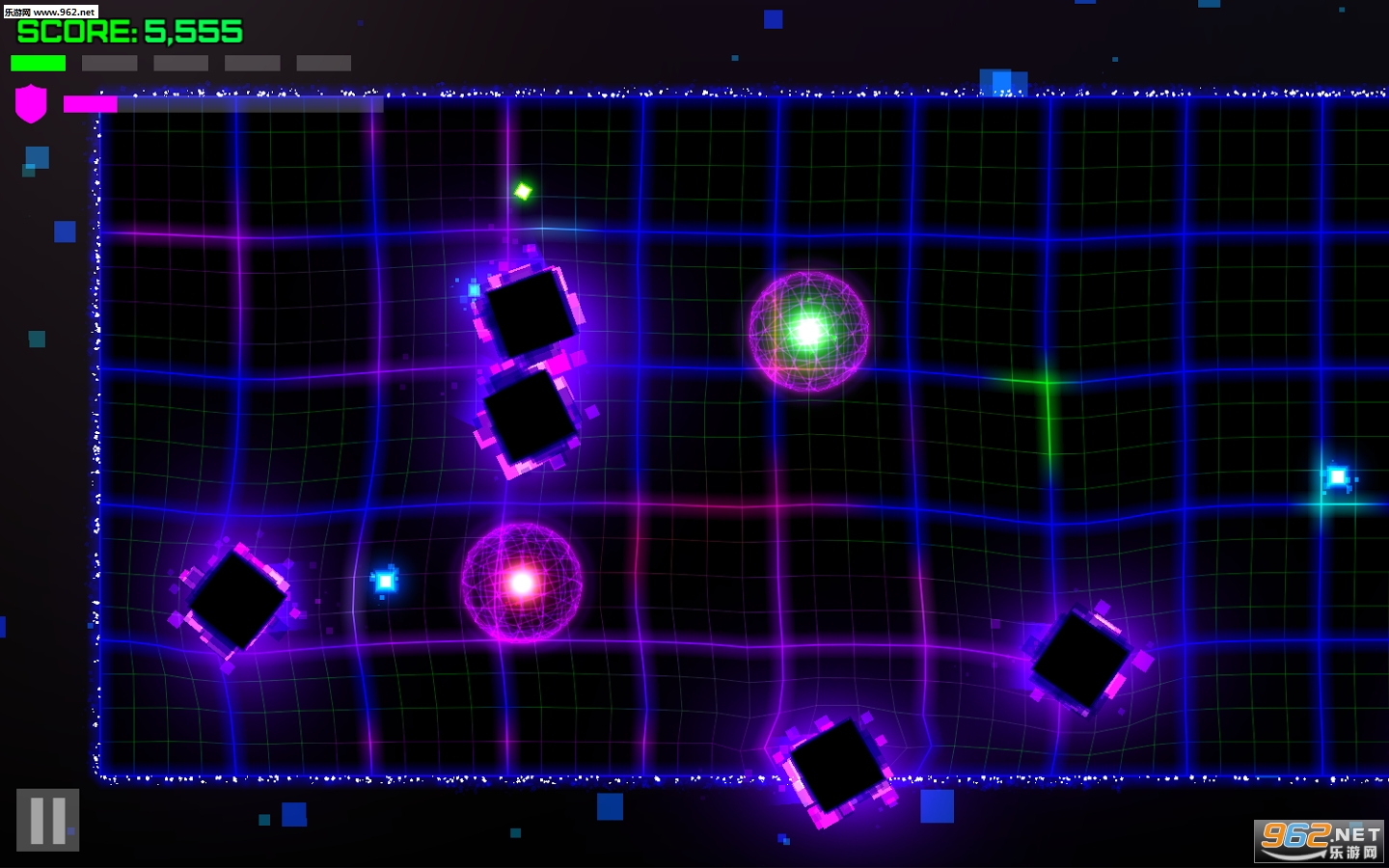 进入多彩的霓虹世界,躲避不同的几何图形的敌人并获取能力加强!磨练你的游戏技巧至极致。
